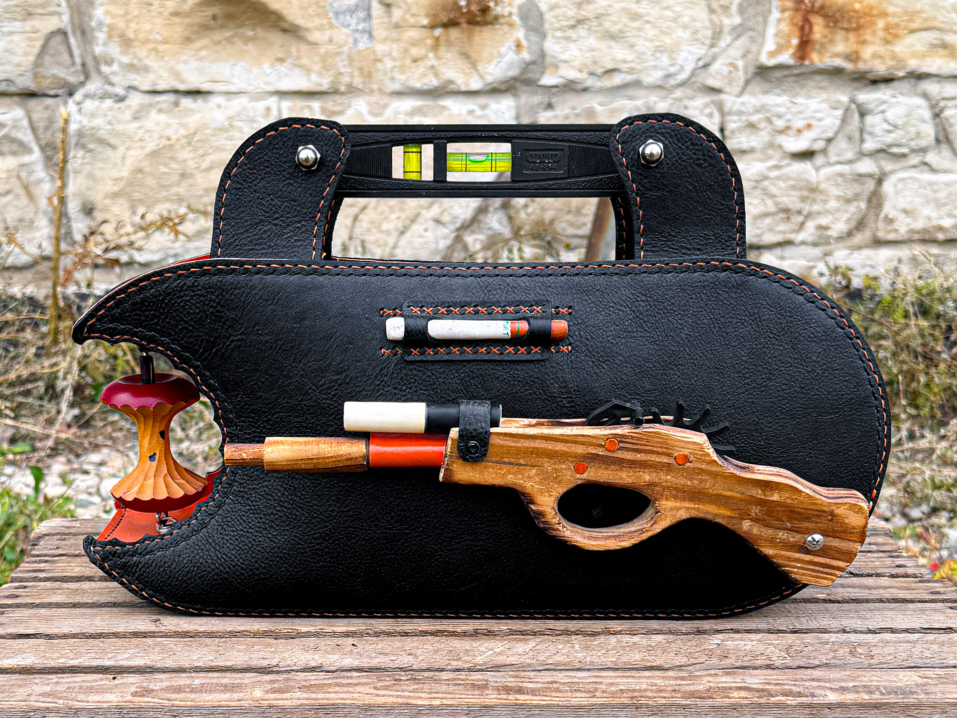 RATIONALE FOOD SUPPLY, RUBBER BAND pistol, SMOKING BARREL, STANLEY LEVEL, COWBOY KILLER, TAMPER-PROOF STORAGE